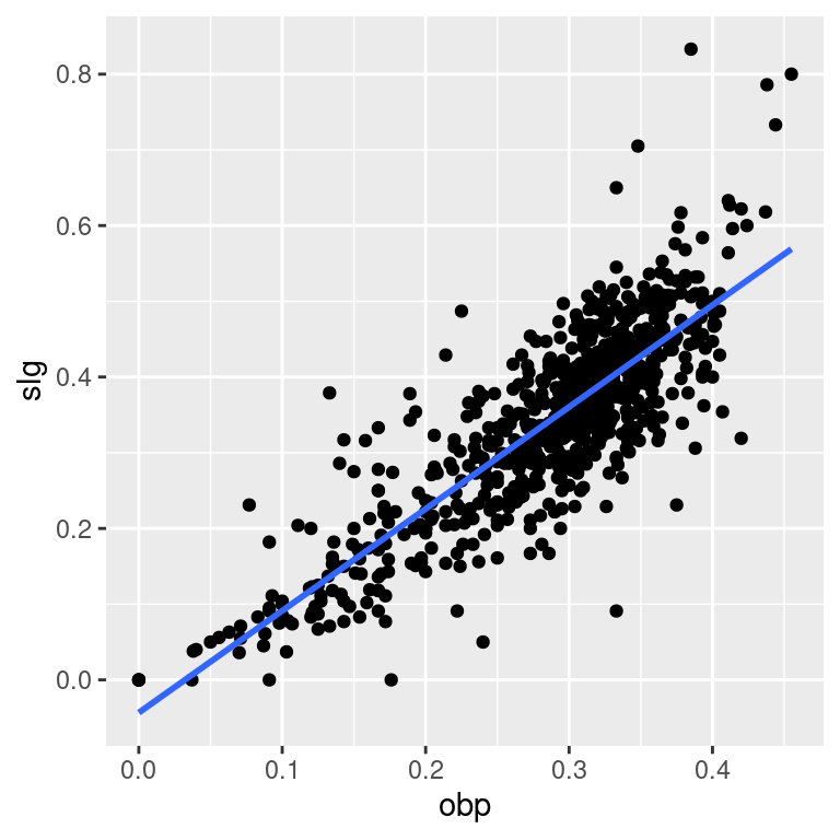 mod <- lm(slg ~ obp, data = mlbbat10)