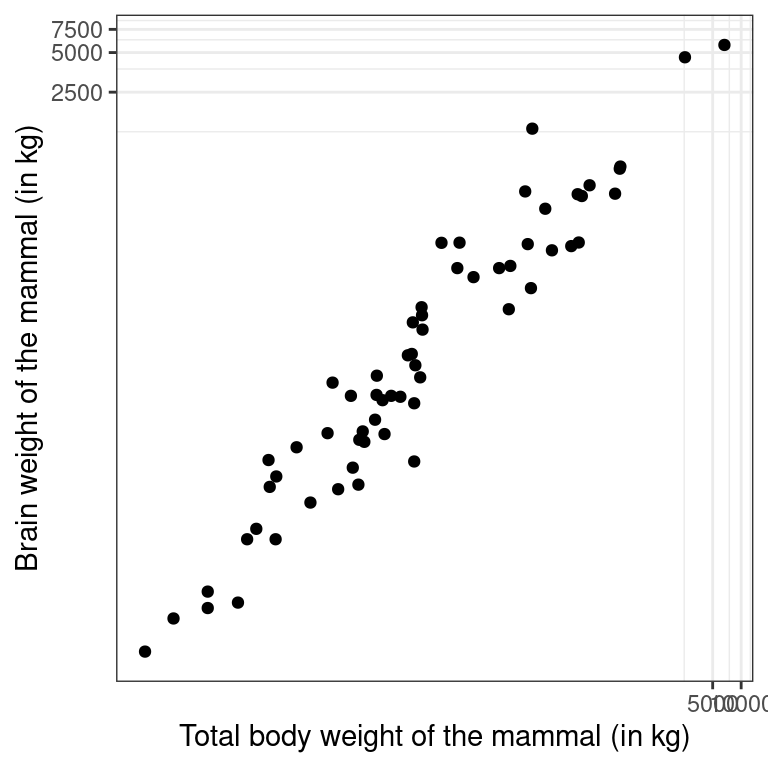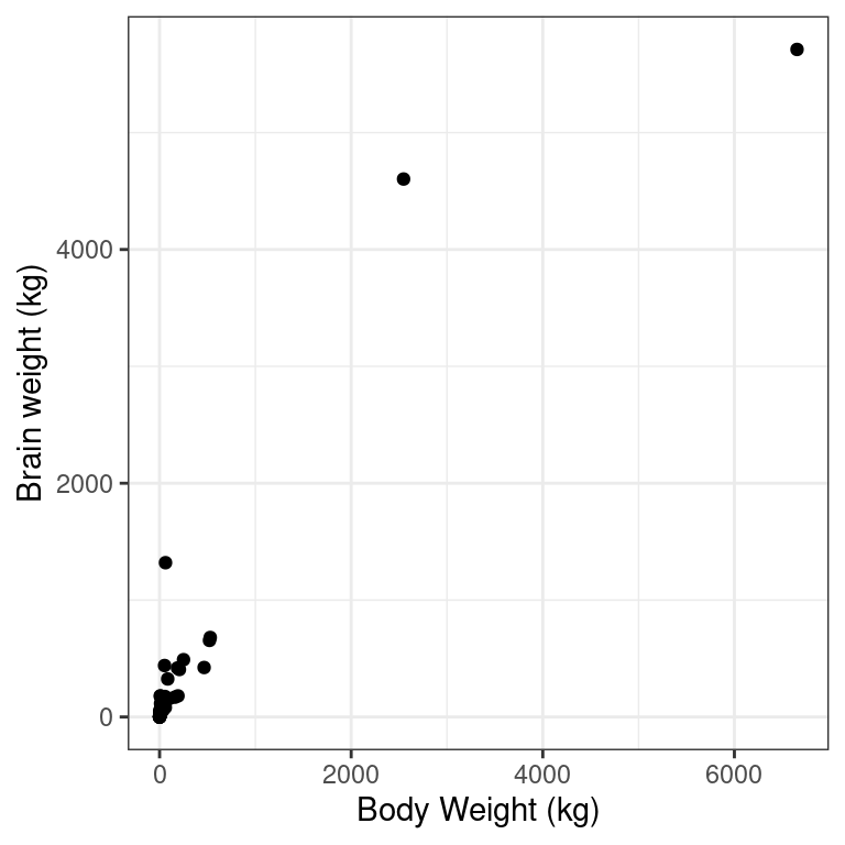 labs(x = "Body Weight (kg)", y = "Brain weight (kg)")